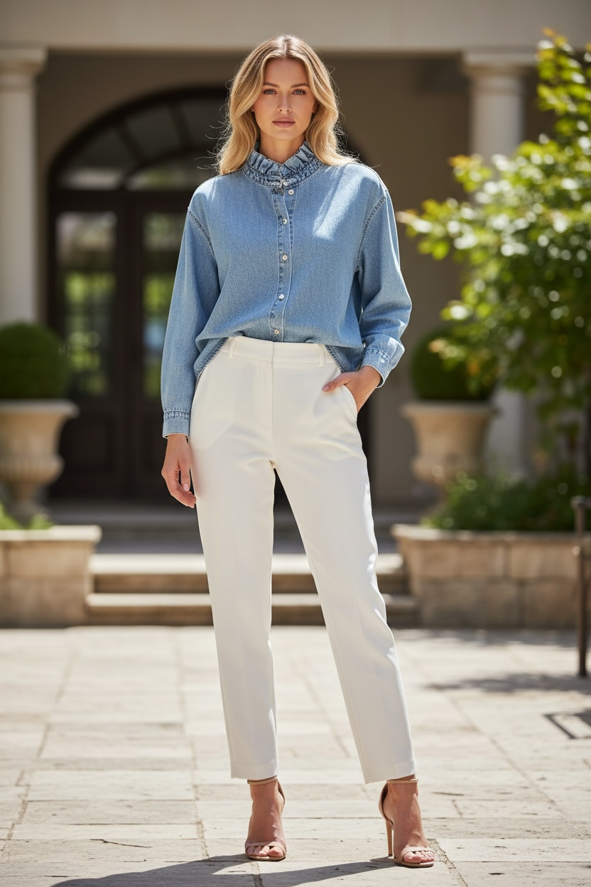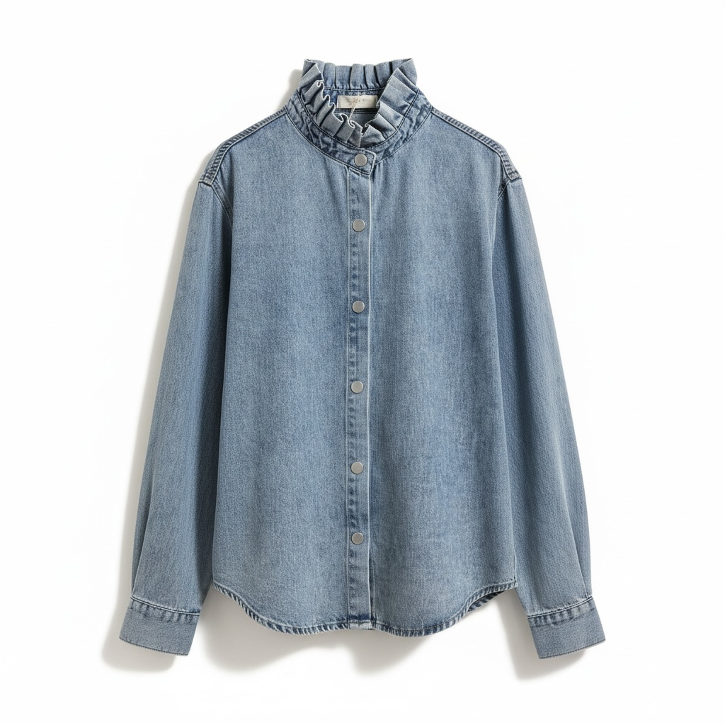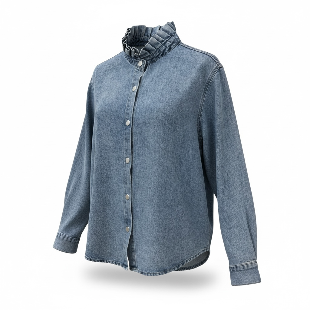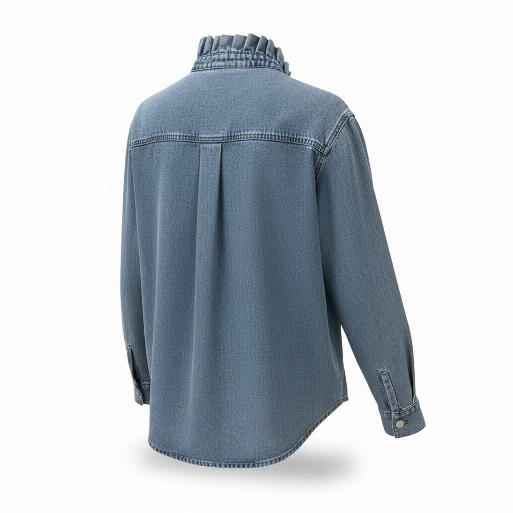 Nuestra camisa vaquera con cuello volante es la combinación perfecta entre comodidad y estilo. Con un diseño femenino y actual, destaca por su cuello fruncido que aporta un toque romántico y diferente a la clásica camisa denim.