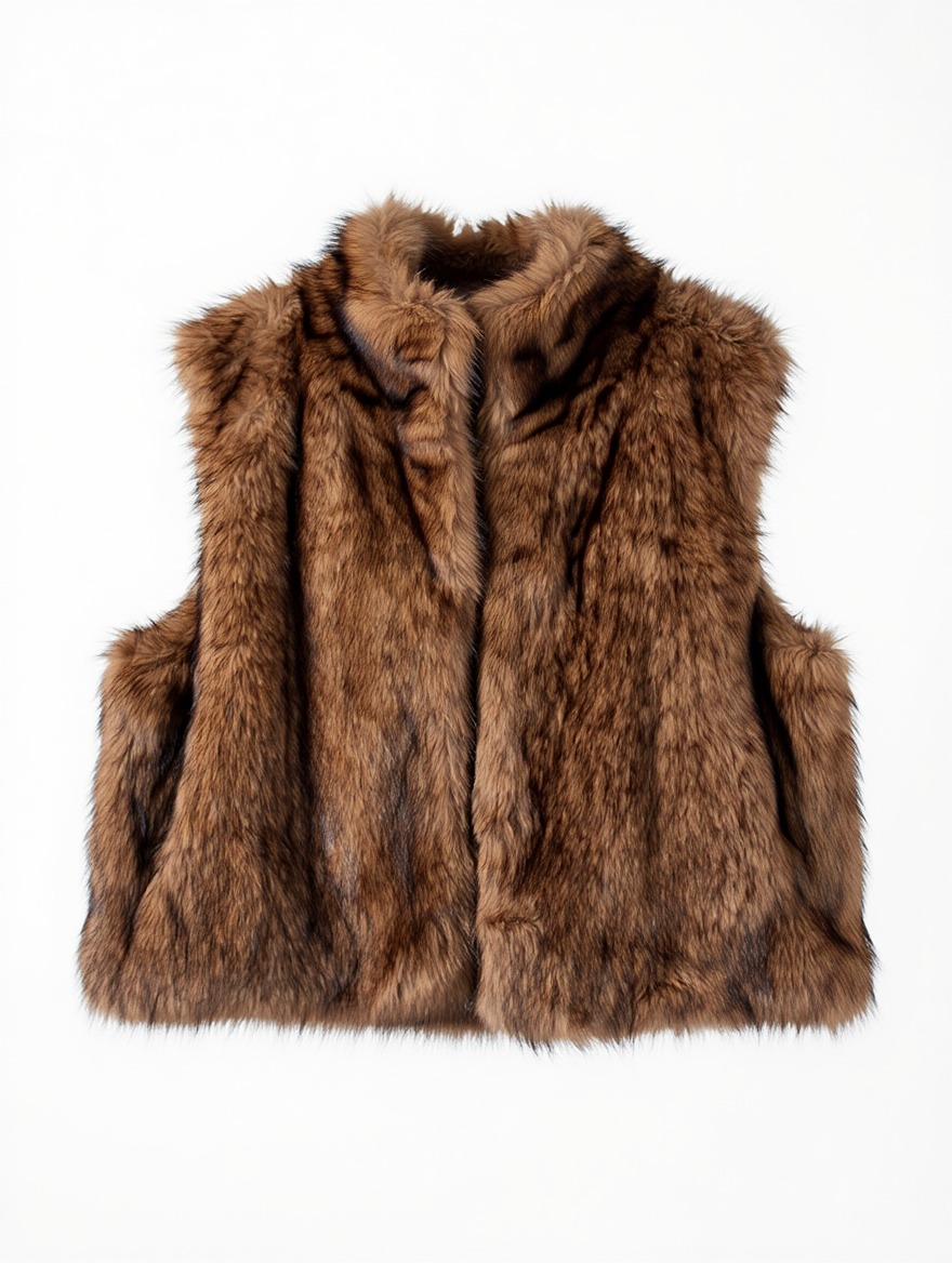 Chaleco Pelo sintético CARLA Color VISÓN. Cierre corchetes, bolsillos laterales