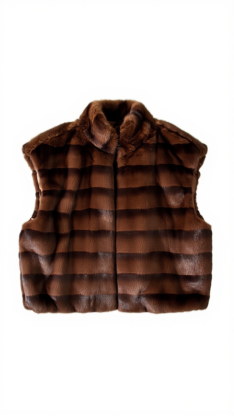 Chaleco SANDRA Color CHOCOLATE. Pelo sintético.Talla ÚNICA. Cierre con cremallera y bolsillos laterales.