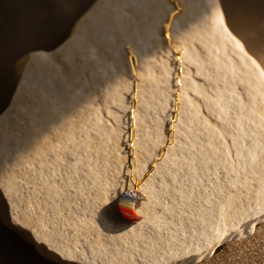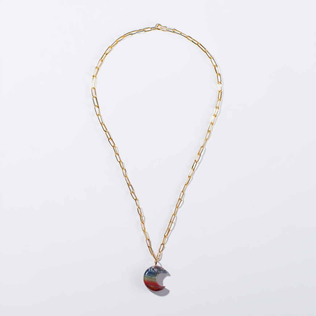 Gargantilla Lunera. Gargantilla de acero con piedra en forma de luna. Longitud de 45cm.